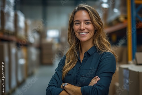 Logistics manager coordinating operations in a warehouse setting, emphasizing organization and efficiency