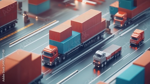 Logistics network flat design side view global supply chain theme 3D render Complementary Color Scheme