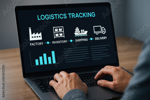 Logistics tracking factory inventory shipping delivery chart business technology concept