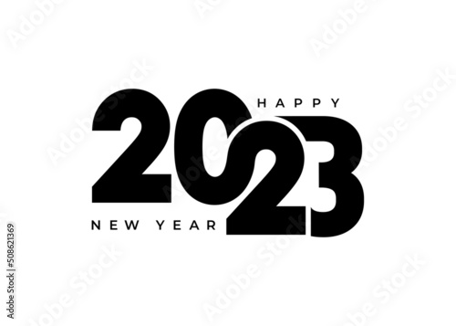 Logo Happy New Year 2023 text design. Cover of business diary for 2023 with wishes. Brochure design template, card, banner, poster, card, banner. Numbers and letters isolated on white background.
