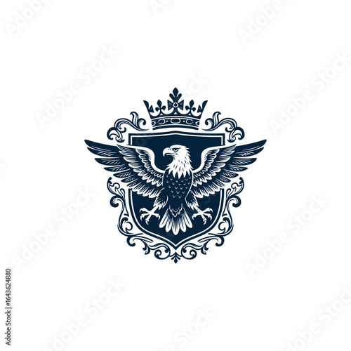 logo illustration of an eagle in a royal crest. Intricate linework emphasizes power, nobility, and elegance, perfect for heraldry, luxury, and corporate