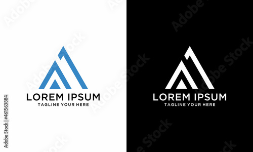 logo that combines mountain shapes, analytics, initial letters A . icons for business, finance, travel and personal branding. on a black and white background.