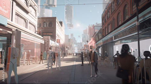 london city street life at night with busy people walking