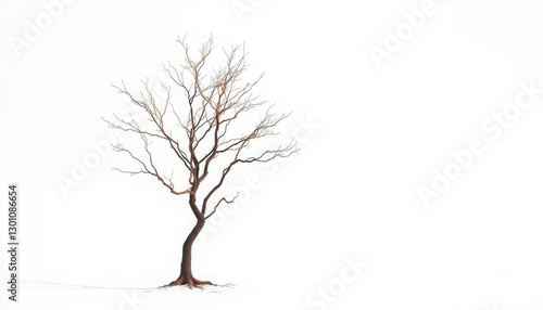 Lone deciduous tree, stark branches against pure white, autumn, tree