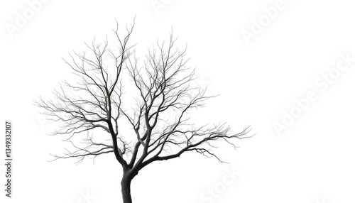 Lone deciduous tree, stark branches against pure white, flora, backdrop