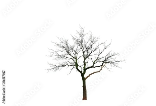 Lone deciduous tree, stark branches against pure white, stock, plant