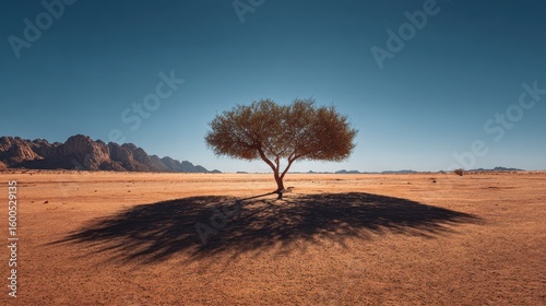 Lone Tree Stands Tall and casts a long Shadow in arid Namib Desert at Sunset