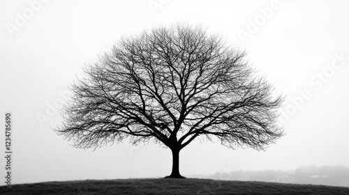 Lone tree, winter, foggy field, minimalist nature scene, website background
