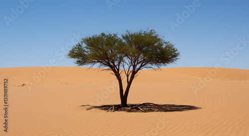 Lone Tree With Exposed Roots in a Harsh Desert Landscape