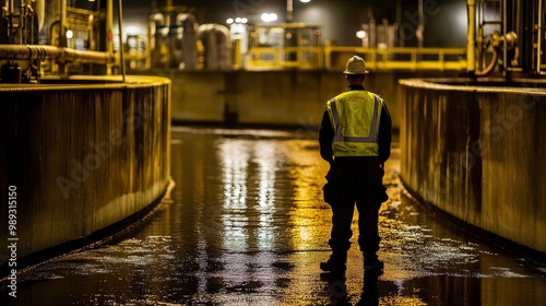 Lonely Night Shift Worker Navigating the Industrial Landscape