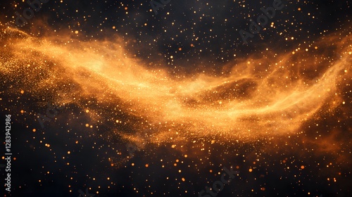 Long, curving line of fire with a lot of sparks. The fire is orange and the sparks are small