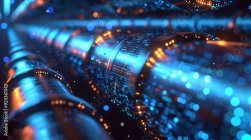 Long Digital Pipeline Formed by Vibrant Glowing Blue Matrix Binary Code