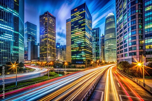 Long Exposure Business Backgrounds: City Lights, Blurred Streets, Abstract Corporate Night Scenes, Office Building Lights, Financial District, Urban Skyline, Modern Architecture,