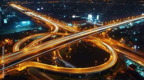 Long Exposure Image of Nighttime Highway Traffic in Urban Area