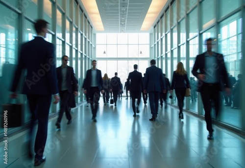 Long Exposure People Walk Inside Building Hallway