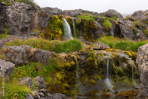 Long exposure photo of waterfall, view of the small waterfall in Westfjords of Iceland, Europe.