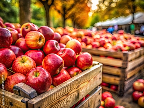 Long Exposure Photography: Red Apples, Fresh Harvest, Market Crate, Shallow Depth of Field, Selective Focus