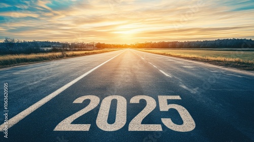 Long highway with painted on it, pointing forward under a vibrant sky, representing optimism for the new year