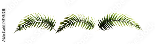 Long leafy palm fronds with detailed green foliage arranged in a straight line against a plain white background perfect for nature and tropical design themes