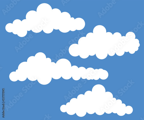 Long White vector Cloud set. Abstract white cloudy set isolated Vector illustration with blue background