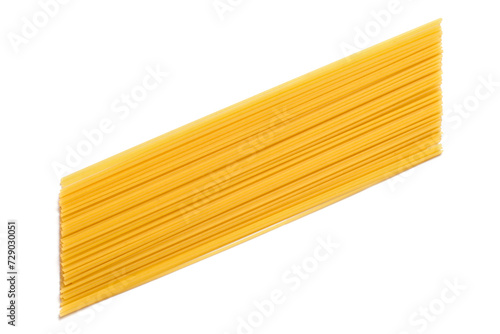 Long yellow spaghetti on white background. Pasta isolated. Natural pasta.