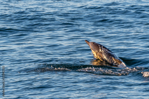 Long-beaked common dolphin (Delphinus capensis) surfaces off the coast of Baja California, Mexico.