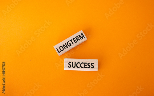 Longterm success symbol. Wooden blocks with words Longterm success. Beautiful yellow background. Business and Longterm success concept. Copy space.