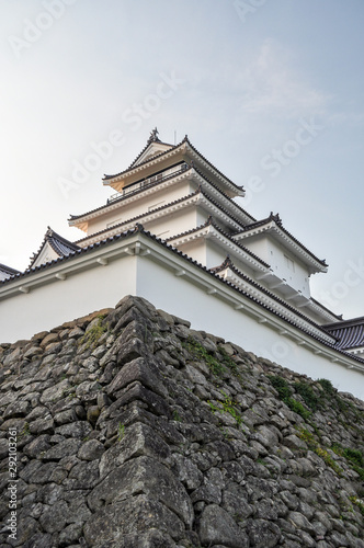 Looking up Wakamatsu Castle in Japan