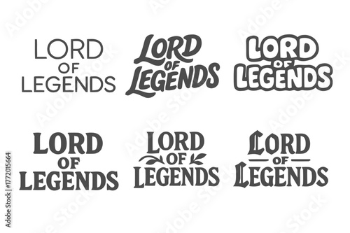 Lord of Legends Lettering. Lord of Legends. Set lettering. harmonious lettering variations of the same emblematic concept (Modern minimal monoline lettering,