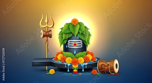 Lord Shiva Lingam with Trishul and Damaru for Mahashivratri festival.