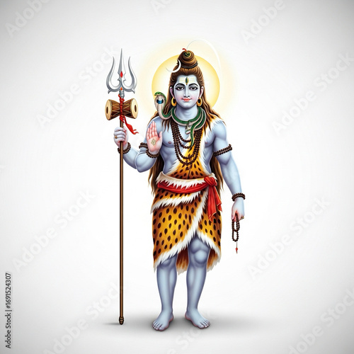 Lord Shiva with Trishul in blessing pose on white background