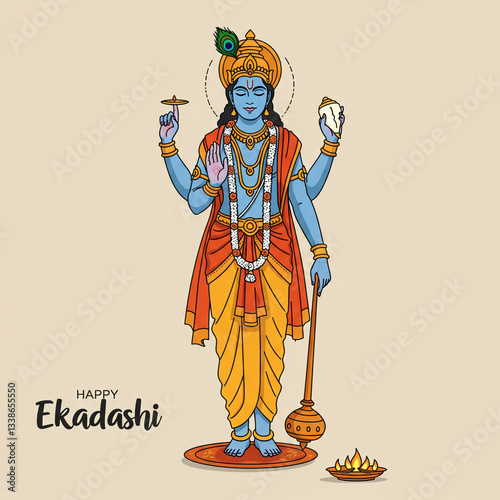Lord Vishnu Holding Sacred Items in His Divine Hands
