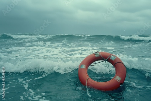 Lost at Sea. Life Saver Buoy Floating in the Bleak Ocean