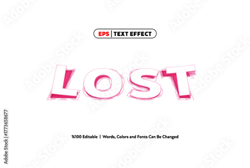 Lost word text effect editable pink and white colors 3D style vector illustration design for creative use