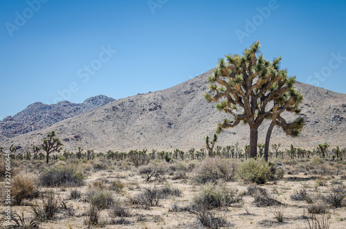 Lots of Joshua Trees in Joshua Tree National Park in Southern California on a sunny summer day in the Mojave desert
