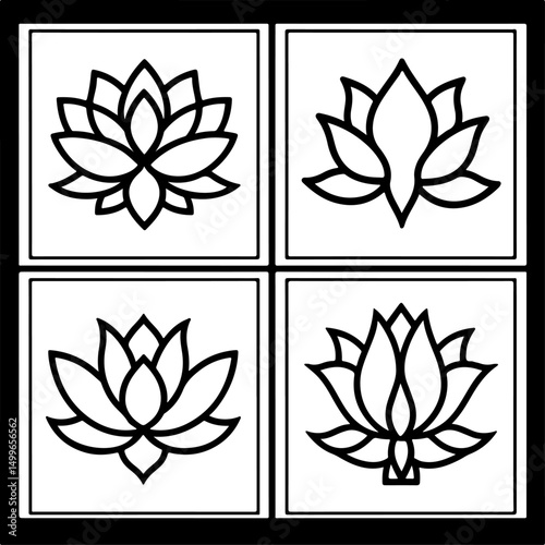 Lotus Flower Outline Icon Set" vector