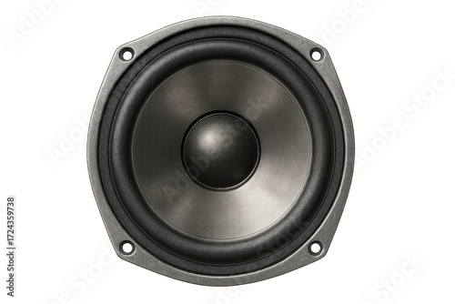 Loudspeaker woofer creating impactful sound on transparent background