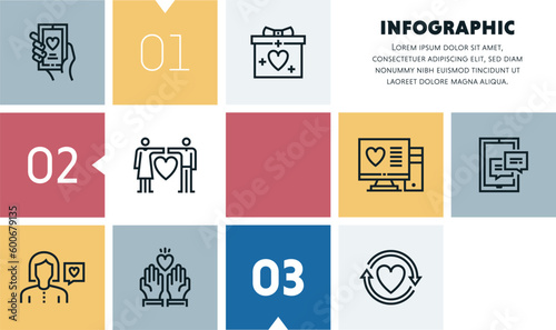 Love and life cycle management infographic design with icons, made by thin line style with editable strokes.