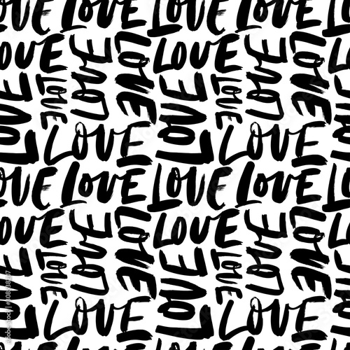 Love calligraphic phrase seamless pattern. Abstract romantic hand drawn seamless pattern to Happy Valentine's Day.