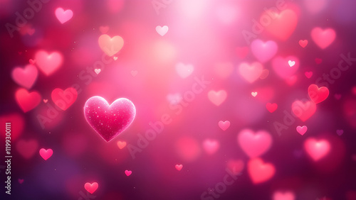 Love hearts bokeh background pink and red hearts, Valentine's Day poster, banner design illustration.