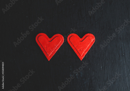Love hearts on wooden texture background. Valentine’s day card concept. Heart for Valentine’s Day Background.