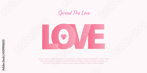 Love Letter Text in Pink Color For Greeting card with heart small balloon. Spread the love.