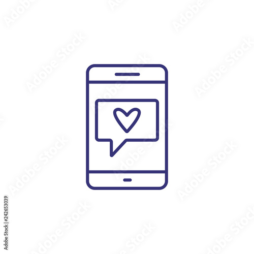 Love message on smartphone line icon. Dating application, love chat, internet dating. Valentine Day concept. Vector illustration can be used for topics like relationships, networking, technology
