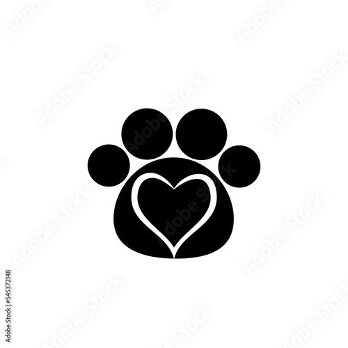 Love paw logo. Animal love symbol paw print with heart icon isolated on white background