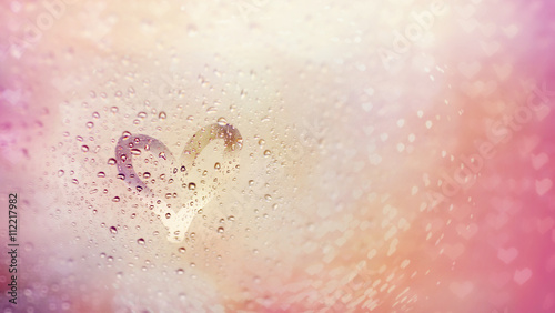 "Love rain and bokeh light", view through the windshield of strong rainy day. Abstract of defocused bokeh lights background.