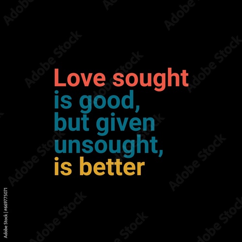 love sought is good, but given unsought is better. motivational quotes and love quotes for motivation, success, inspiration, love, and t-shirt design.