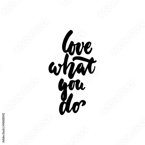 Love what you do - hand drawn lettering phrase isolated on the white background. Fun brush ink inscription for photo overlays, greeting card or t-shirt print, poster design.