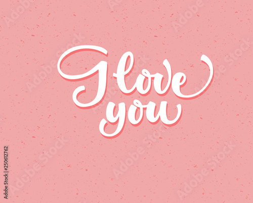 Love You, hand written lettering. Romantic calligraphy card inscription Valentine day