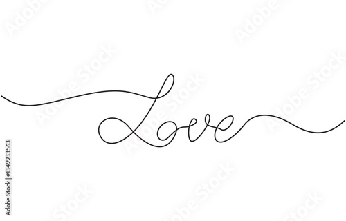 Love you lettering in one line style, hand drawn message in one continuous line art, Calligraphic i love you text in ballpoint pen style isolated on white background.