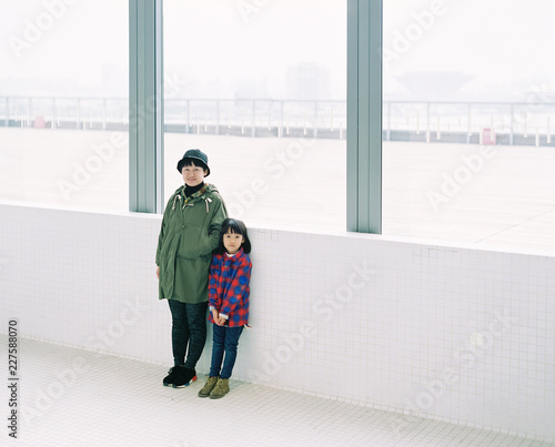 Lovely Asian mother and daughter in clean interiors, shot by 120 film